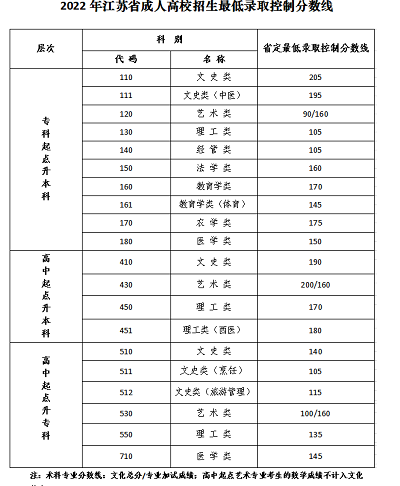 江蘇省2022年成人高考最低錄取控制分數(shù)線公布