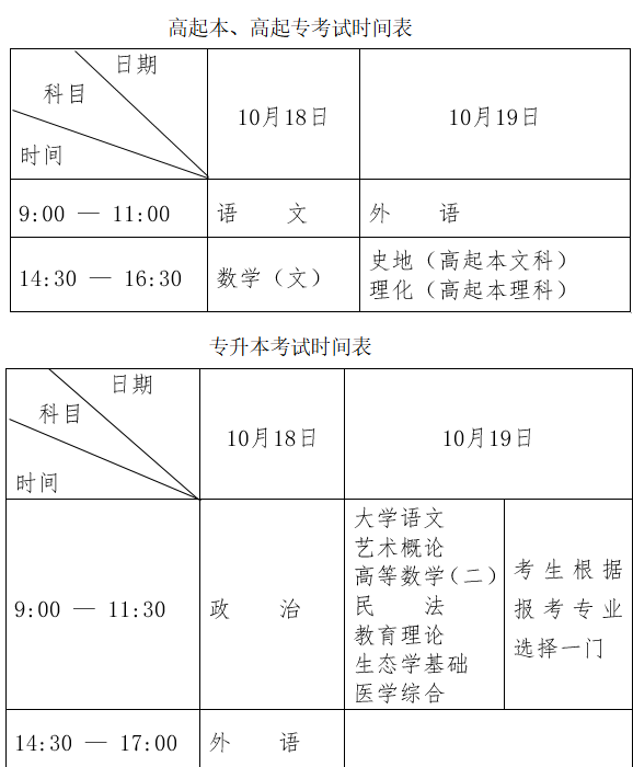 理科類、文科類(含體育類專業、藝術類專業):語文、數學(文)、外語。