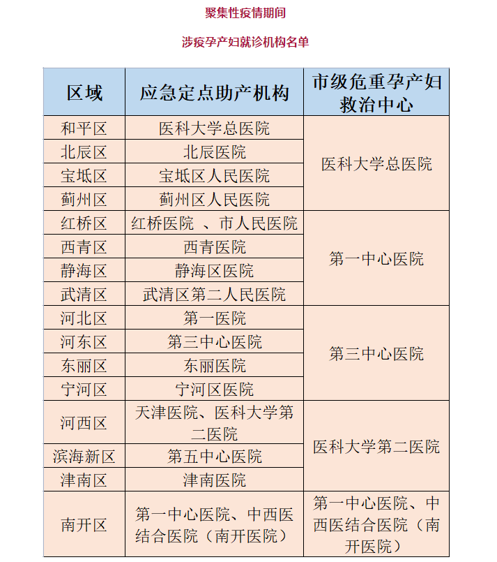 天津市新冠肺炎聚集性疫情期間孕產婦醫療服務保障安排