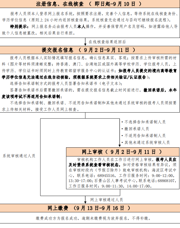 3.網上繳費時間為 2025年 9月 13日至 9月 16日。完成報名提交并通過審核的人員可進行網上繳費,繳費成功方為報名成功。報考人員報名成功后,已繳費用不予退還。