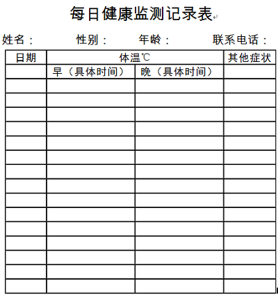 2.考核前,考生需開展為期14天的自我健康監測,填寫《每日健康監測記錄表》。(日期為考生參加考試前14日)