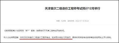 天津市2022年度首次二級(jí)造價(jià)工程師考試初步預(yù)計(jì)12月舉行!