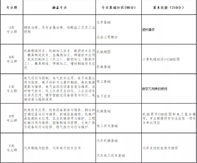 根據省教育廳下發的《山西省中等職業學校畢業生對口升學考試加工制造類專業職業技能考試大綱(試行)》,本專業職業技能考試分專業基礎知識考試和基本技能考試兩部分,滿分300分,其中,專業基礎知識占90分,基本技能占210分,考試成績結果體現為“合格”和“不合格”。考試內容如下: