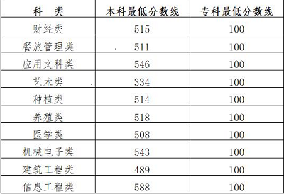 (2)2022年吉林省普通高校對口招生統一考試各科類、批次錄取最低控制分數線見下表: