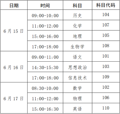 2.高中一年級學生以外的考生可按需要選擇報考科目,已獲得高中學業水平考試合格成績的科目,不能重復報考。